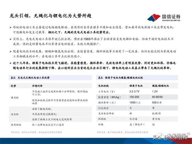龙头引领,无绳化与锂电化为大势所趋