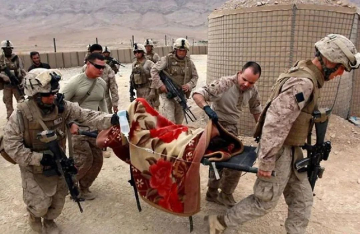 前几年,美军在阿富汗的战场救护,从照片上看,也是使用中国毛毯。这明显是一条中国生产的花开富贵图案的拉舍尔毛毯。由于保暖措施在战场救护中具有不可替代的治疗作用,因此美军救护伤员的时候,会直接使用周围能够御寒的物品。而在阿富汗最常见的御寒物品,就是各种毯子。