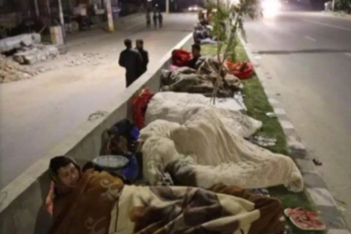 这是2015年4月尼泊尔地震灾民的情景,仔细看那些中国毯子。