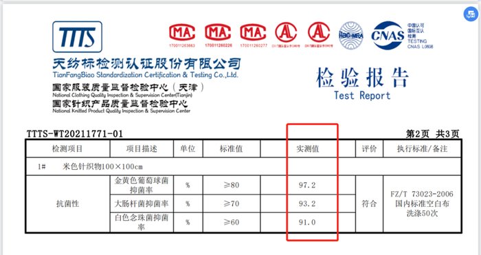 金黄色葡萄球菌抑菌率达到了97.2%,大肠杆菌、白色念珠球菌抑菌率均在91%以上。
