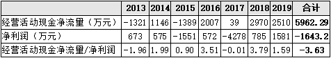 ▲2013-2019年金运激光净现比情况