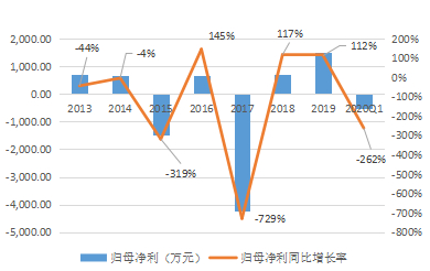 ▲2013-2020Q1金运激光归母净利及增速