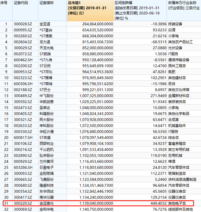 ▲2019.1.31-2020.6.18全部A股涨幅排名