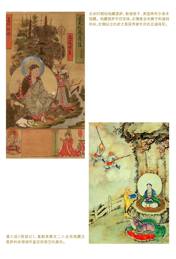 地藏菩萨也是佛教中尽孝的楷模。其本愿故事记载,地藏菩萨那时为婆罗门女,其母修习邪道,死后堕入地狱受苦。此婆罗门女卖掉家宅财产,修建佛塔佛寺,供养十分虔诚,最终通过信佛念经,普度众生,为母亲积累了功德,使得母亲脱离苦海。这个故事经过不断改编,在民间也广为流传。