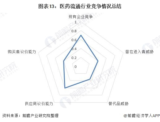 从五力竞争模型角度分析,目前,我国医药流通行业属于医药商业行业,替代品威胁较小;现有竞争者数量较多,但市场集中度正在持续提升;上游供应商一般为医药研发、生产相关企业,议价能力较强,而下游消费市场主要是公立医院、医疗机构、普通消费者等,议价能力较强;同时,因行业存在严格的准入资质以及资金、技术门槛较高,潜在进入者威胁相对适中。
