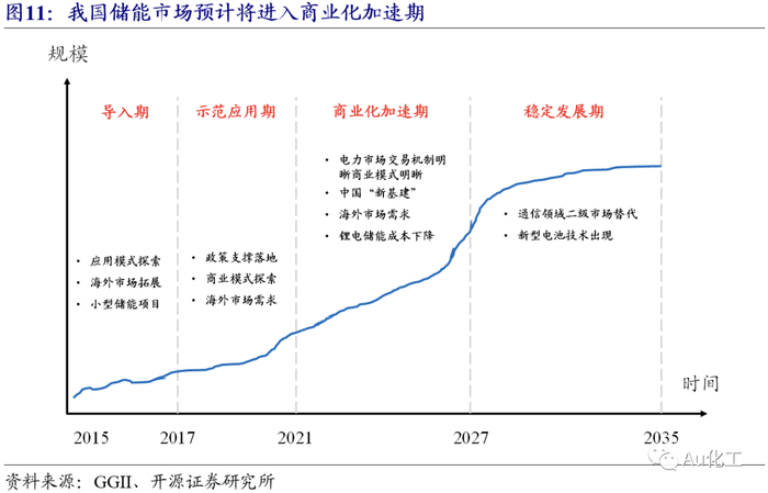 大力发展储能势在必行,储能行业将进入商业化加速期。由于新能源发电存在供应随机性,发电功率不稳定,并网困难等问题,导致我国弃风、弃水、弃光现象突出。在我国乃至全世界日益加大发展新能源产业的背景下,储能技术的突破和发展愈发重要。2021年7月15日,国家发展改革委和国家能源局发布《关于加快推动新型储能发展的指导意见》,并制定了发展目标:到2025年实现新型储能从商业化初期向规模化发展转变,装机规模达3000万千瓦以上;到2030年,实现新型储能全面市场化发展。新型储能将成为能源领域碳达峰碳中和的关键支撑之一。2021年7月29日,国家发改委发布了《关于进一步完善分时电价机制的通知》,在政策上进一步给予储能行业快速发展的支撑。据GGII数据,2020年我国储能锂电池出货量达到16.2GWh,其中电力储能6.6GWh,通讯储能7.4GWh,其他包括城市轨道交通、工业等领域用储能锂电池2.2GWh,受国外需求拉动明显。2021年上半年,我国储能锂电池出货量为11.1GWh,并预计到2025年我国储能锂电池出货量可达180GWh,5年复合增速超60%。到2030年复合增速预计有所放缓。