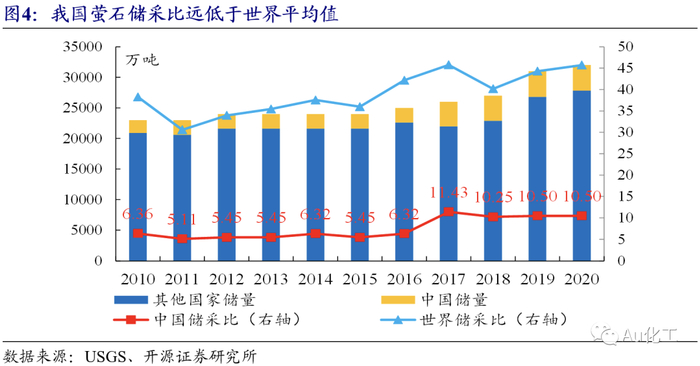 1.1 供给:我国萤石储采比严重失衡,国内供给将成稳中偏紧态势
