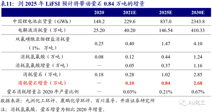 2.1.3 双氟磺酰亚胺锂盐(LiFSI)对萤石需求量带动较小