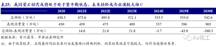 (3)落后产能出清:考虑到国内对萤石资源的保护和环保趋严的要求,对盗采、乱采的打击,以及每年其他新增产量,我们假设2022-2025年萤石产能、产量净出清10万吨(不含包钢项目、贵州磷化项目、云南氟磷项目);2026-2030年每年净出清5万吨。