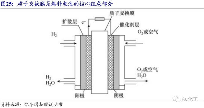 PFSR:质子交换膜关键材料,将随氢能产业快速发展。全氟磺酸树脂(PFSR)由四氟乙烯(TFE)和全氟磺酰烯醚(PSVE)共聚而成,是已知的最强固体超强酸,具有耐热性好、化学稳定性优、机械强度高、热熔融加工性好等优点。全氟磺酸树脂的主要用途是制造质子交换膜和离子交换膜,应用于燃料电池隔膜和氯碱工业等领域。质子交换膜是燃料电池的核心组成部分之一,而全氟磺酸树脂是制造质子交换膜的关键材料,未来将随氢能产业快速发展。根据新思界产业研究中心数据,2020-2025年,预计全球质子交换膜燃料电池市场规模年均复合增速将达到17%,到2025年市场规模将达到165亿美元以上。受质子交换膜燃料电池市场发展的拉动,预计到2025年,全球质子交换膜市场规模将达到20亿美元左右,全氟磺酸树脂需求也将随之增加。目前,我国PFSR生产企业主要是东岳集团,质子交换膜规划产能150万吨/年,目前50吨/年已经投产。随着燃料电池汽车未来渗透率的提高、氯碱离子膜应用的扩张,PFSR发展前景较好。但由于目前国内产能很少,未来规划不明,暂不做测算。