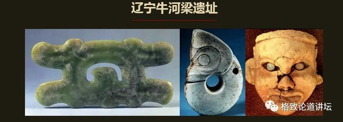 东北的辽宁牛河梁遗址,是从上世纪七十年代就被逐渐发现的一个重要文化遗址,也是红山文化晚期规模最大的一处中心祭祀遗址。它出土了女神像、猪头龙身的玉猪龙,还有一些飞禽和重要的玉器。