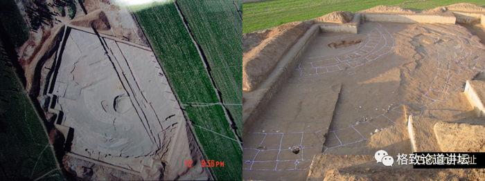 图片中是红山文化的祭坛,用来祭祀祖先和表达对原始山川、自然现象的崇拜。我们可以看到,它的方形地基上有圆形的祭坛,就和我们现在的天坛非常相似,代表“天方地圆”的理念。