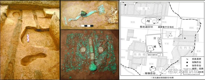 最后我们讲二里头,它代表中国最完整的城市和文明的标志。因为它有明显的宫殿,有十字街,中国城市建设中十字街的布局就是从二里头开始的。它还有绿松石、宫廷礼志等等这些因素,除此之外它还制铜。