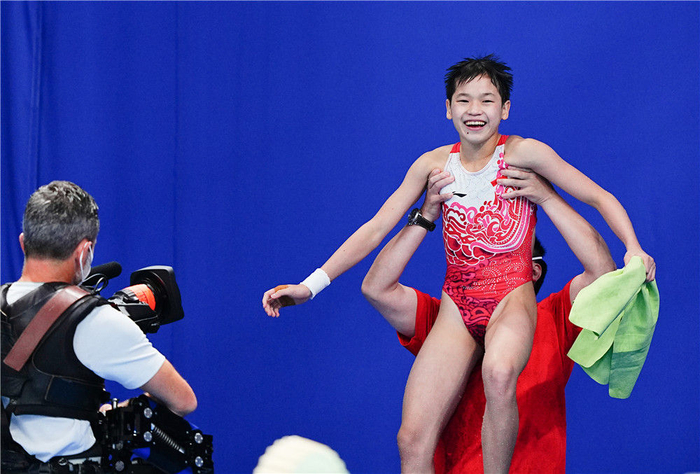 少小离家,那些常人可以想见的难舍,早已云淡风轻。小姑娘只腼腆地笑着说:“刚开始是有点辛苦,想家,但是我太喜欢跳水了,爸爸鼓励我,让我坚持。”