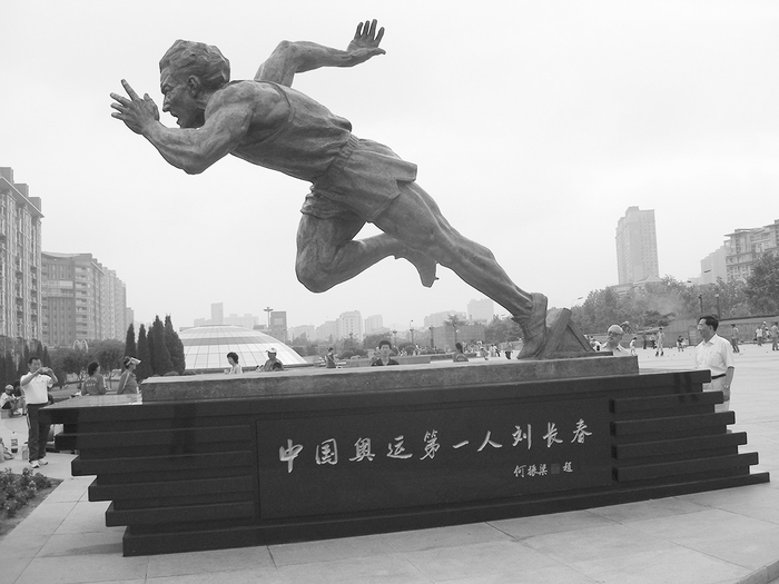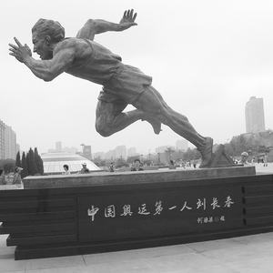 面对刘长春的雕像,我一次次在揣摩,刘长春当年23岁,没有去过美国,没有参加过奥运大赛,单刀赴会的胆魄何来?一个人坐船从上海码头起航,漂泊23天,面对茫茫大海他在思考什么?孤独吗?自信吗?障碍困苦是什么?