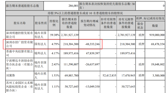 半年报显示,截至2021年6月30日,深圳明德控股发展有限公司持股为59.3%,深圳市招广投资有限公司持股为4.79%,香港中央结算有限公司持股为4.17%,宁波顺达丰润创业投资合伙企业(有限合伙)持股为2.45%;刘冀鲁持股1.53%。