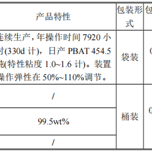 项目内容:项目主要包含30万吨/年PBAT和副产物四氢呋喃等