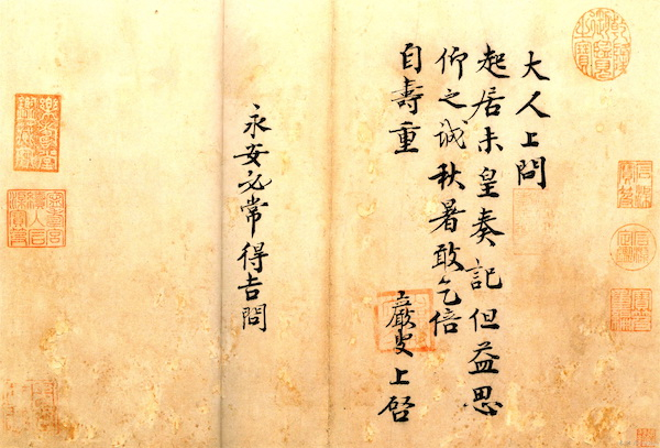 “大人上问起居,未皇奏记,但益思仰之诚,秋暑敢乞倍自寿重。岩叟上启,永安,必常得吉问。”