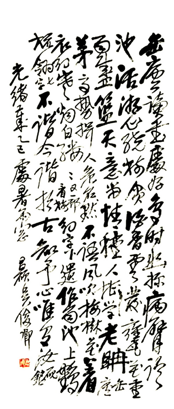 “(吴昌硕)行草书,纯任自然,一无做作,下笔迅疾。虽尺幅小品,便自有排山倒海之势。此法也自先生开之,先生之前尚未见专门名家。”