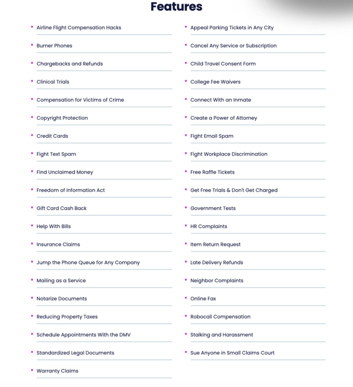 如今DoNotPay已经成为了一个知名的“机器人律师”公司,所涉及的业务也扩展到了许多领域,主要包括这几大领域: