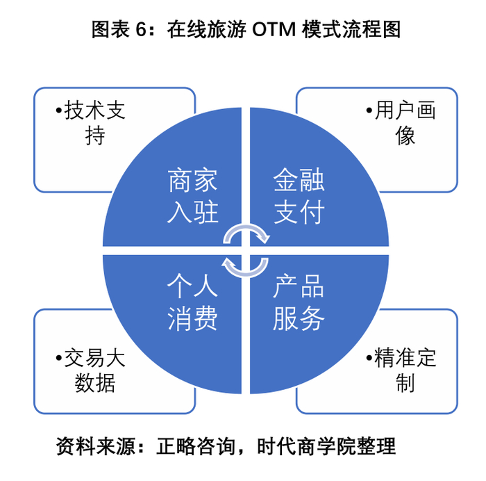 OTM(Online Travel Marketplace)在线旅游生态,由飞猪提出,基于阿里强大的技术支持、交易数据和客户画像,提供精准营销工具和定制应用,为航司、酒店等入驻商家实现平台赋能,最终实现商家产品服务与个人消费、金融支付、信用体系等一起构筑的完整在线旅游生态系统。
