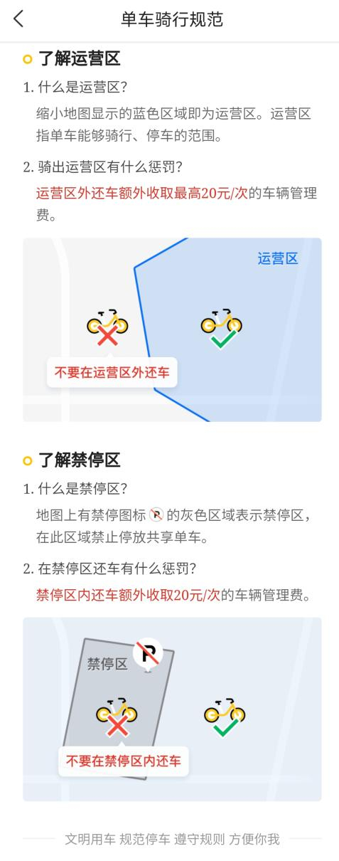 记者发现,哈啰单车、美团单车和青桔单车几大平台,在用车指南、计价规则都进行了更新,为客户解释何为禁停区、为什么设立禁停区和处罚标准。其中新增了管理费和调度费,用于督促用户规范停车。