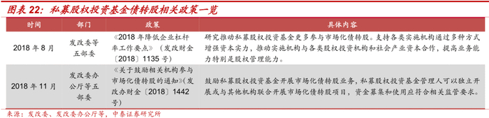 2018年8月,《2018年降低企业杠杆率工作要点》(发改财金〔2018〕1135号)提出要研究推动私募股权投资基金更多参与市场化债转股[15];此外,发改办财金2018年1442号文也再次强调要鼓励私募股权投资基金开展债转股业务。私募股权投资基金的资金是股权性质,能够有效防止债转股演变为“明股实债”,同时其运作机制更加灵活且相对市场化,有利于推动债转股的市场化发展路径。