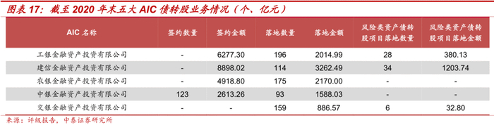 随着2018年6月央行定向降准释放资金助推市场化债转股,AIC债转股落地金额大幅增加。截至2020年底,五大AIC债转股项目落地数量为737个,落地金额总计9922.08亿元,其中绝大部分落地项目企业为央企、国企,且落地项目中正常类或关注类资产债转股项目占比相对较高,风险类资产债转股项目落地数量较少。