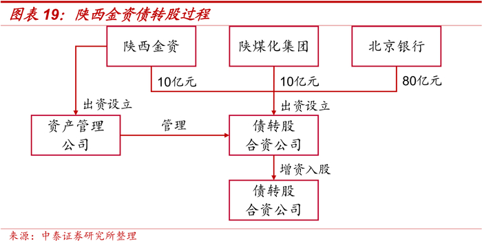 由于地方AMC融资渠道较单一,且资金投放期限相较于债转股并不匹配,因此开展的债转股业务较少。2016年底,陕西金资、陕煤化和北京银行协议分别出资10亿元、10亿元和80亿元成立债转股合资公司,合资公司以100亿元债转股资金对陕煤化全资子公司陕西陕煤榆北煤业有限公司注资进行债转股,是我国首例地方AMC主导且城商行参与的债转股项目。