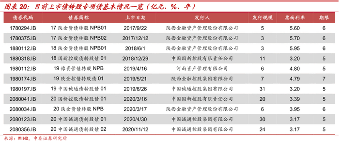 2016年10月,《国务院关于积极稳妥降低企业杠杆率的意见》明确表示国有资本投资运营公司可参与市场化债转股业务。国有资本投资运营公司的资金来源较窄,但相较金融类实施机构却更具投后管理优势。目前发行债转股专项债是国有资本投资运营公司的主要资金补充渠道,截至2021年8月,上市债转股专项债中除由陕西金资、河南资管等地方AMC发行外,由国有资本投资运营公司发行的共6只,规模最高达31亿元。
