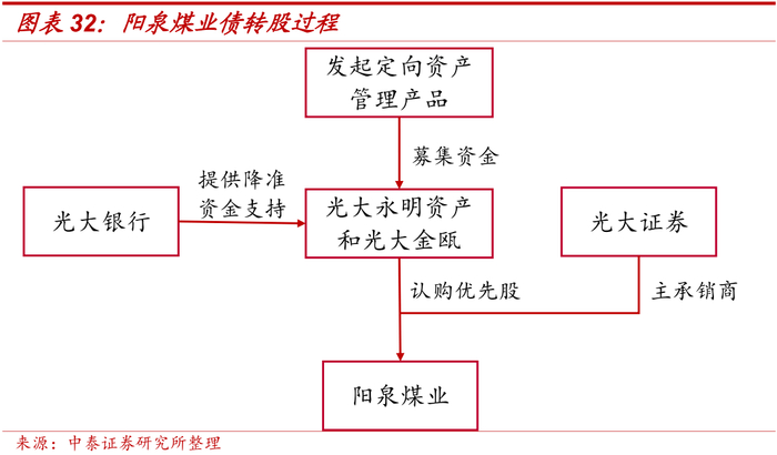 2020年9月,光大永明资产与光大银行、光大证券合作落地阳泉煤业债转优先股项目,是国内首单以上市公司发行优先股方式实施的债转优先股项目。主要由阳泉煤业非公开发行总规模20亿元的优先股,光大银行提供降准资金支持,光大证券作为主承销商,光大永明资产和光大金瓯作为实施机构认购优先股股票,募集资金将专项用于偿还金融机构借款。