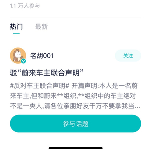 在这份联合声明招来用户反噬过后,林蔚很快就在蔚来APP内更新了动态,表示该声明没有代表蔚来全体车主,“不用主动对号入座”。