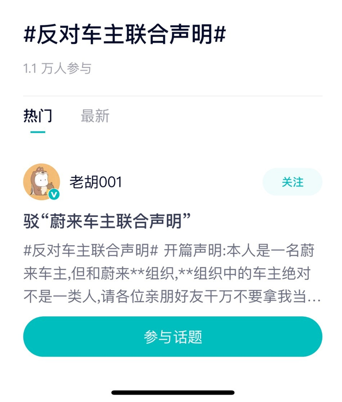 在蔚来APP的社区内,不同意见的车主水火不容:一派表示理解、包容,另一派则激烈地抗议。