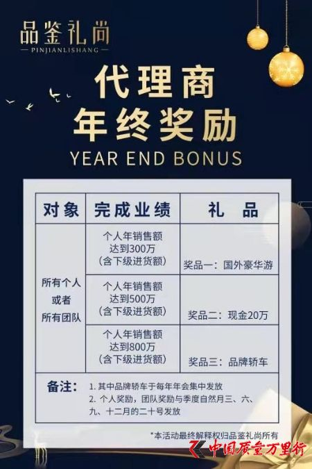 据了解,品鉴礼尚将代理分为臻美创始人、预备创始人、联合创始人三个级别,分别对应县级、区级和市级,拿货价分别为2万元、5万元、8万元,不同级别的代理拿货价各不相同,级别越高,拿货价越便宜。同时代理还有机会参与公司的培训、年会、任职等福利,具体是:臻美创始人2万元的货零售总价为29300元,可获利9300元;预备创始人5万元的货零售总价为86340元,可获利36340元;联合创始人8万元的货零售总价为155864元,可获利75864元。