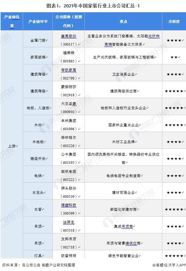 1、家装行业上市公司汇总