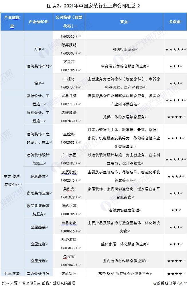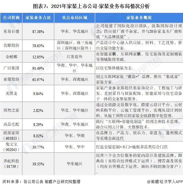 原标题:【最全】2021年中国家装行业上市公司全方位对比(附业务布局汇总、业绩对比、业务规划等) 来源:前瞻产业研究院