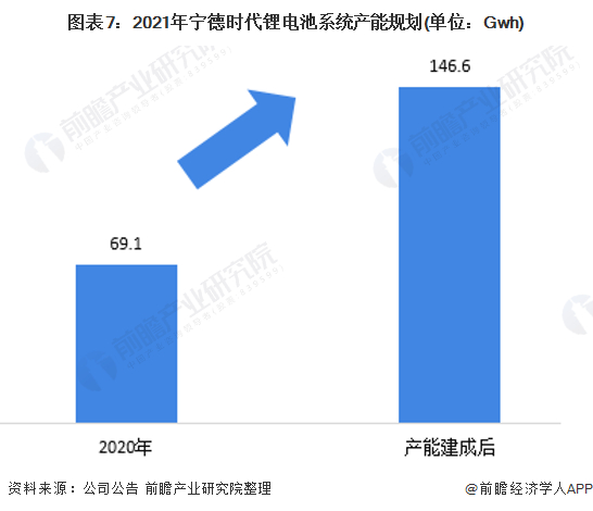 在公司的短期经营方面, 2020年数据显示,公司拥有电池系统在建项目产能77.5GWh,产能项目落地实施后,宁德时代锂电池系统产能将达到146.6Gwh。