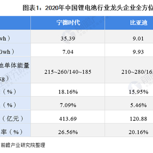 1、中国锂电池行业龙头企业全方位对比