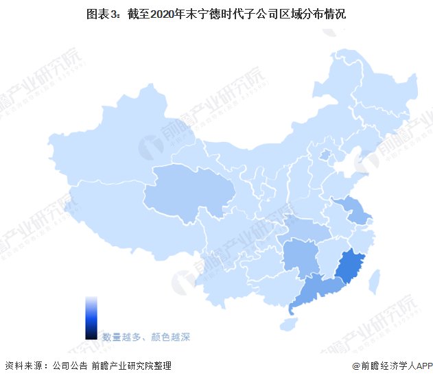 ——宁德时代子公司区域分布:福建和广东是重点布局区域