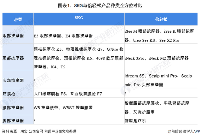 1、 SKG与倍轻松的主要产品为小型按摩器