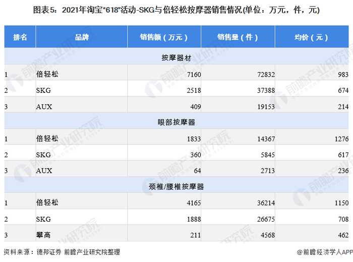 5、SKG VS 倍轻松:2021年淘宝“618”销售情况