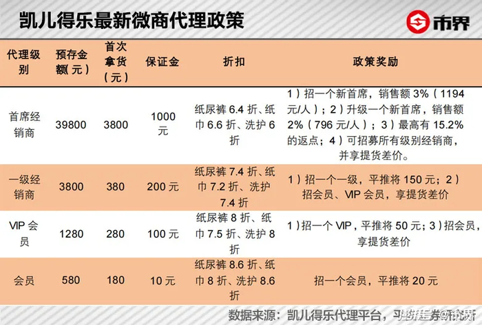 凭借着加入成本低、投入回报预期高,微商有着天然的魔力。加入者只要预存一点钱,便能享受到购物折扣;推销出去还能有返点收入,也就是常说的“人头费”;如果有幸发展成高一级别代理,则能拿到更大的折扣和更高的返点。
