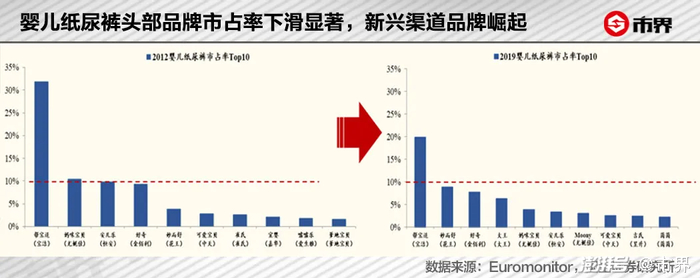 就是在这样一个以宝妈群体为主的垂直销售体系下,2015-2017年间,诞生了凯儿得乐、米菲(杭州千芝雅)、百诺恩(万邦集团)、BEABA(爱朵)等品牌。以凯儿得乐为例,公司虽然2015年才成立,但到了2019年,累计拥有的代理经销商(代理人)达到了36万以上,年销售额超过30亿(含非纸尿裤产品)。借助这波渠道红利,到了2019年,国内TOP5婴儿纸尿裤品牌虽然仍被外资品牌占领,但市占率却下降到了46.5%。