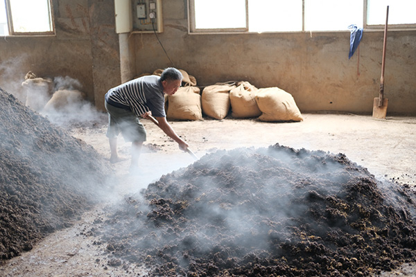 例如发酵,酿酒工人必须在凌晨温度较低时,两两一组,把已经润湿过的高粱装入酒甑。这一步讲究“轻,松,薄,准,匀,平”,不然压不住蒸汽,酒的口感便会受到影响;再如发酵所用的大曲是以小麦为原料,经历40天的高温制曲,一年一度的端午踩曲,再到最后发酵所用的六个月以上陈曲。可见,茅台镇酱香酒酿造工艺之复杂。