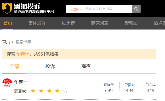在黑猫投诉平台上搜索华莱士,相关投诉达到699条,涉及变质、食物未熟、吃出虫子、异物等多种问题。