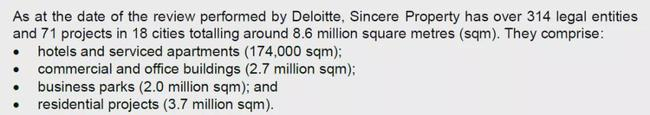 殊不知,协信远创的资产结构非常重,根据事后CDL委派德勤会计师事务所对协信远创的全面审计,协信在全国18个城市的71个项目,总计还有860万平米的可售或自持面积,其中住宅只有360万平米,不到45%,其余为酒店或服务式公寓、商场、写字楼以及科技园区等。