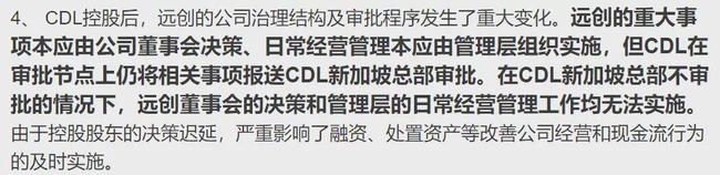 CDL收购协信远创50.1%股份后,董事会设8席,CDL占4席,并不占多数,由CDL首席执行官郭益智和吴旭担任联席董事长,具体事务仍由职业经理人团队负责,被认为是由协信和CDL共同控制。这种体制下,双方碰到问题就开始扯皮。协信方指责CDL控制公司但不作为,CDL方则反戈一击,双方开始口舌之争,严重影响决策效率。