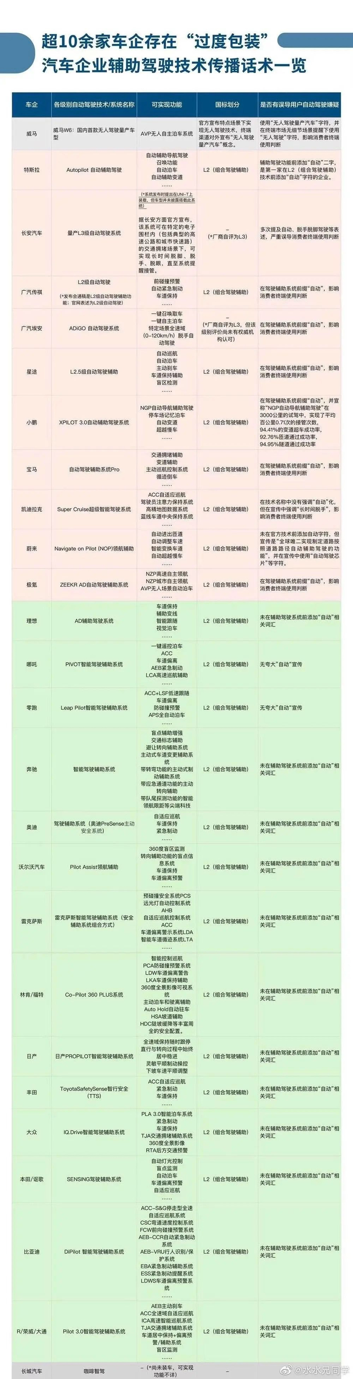 汽车预言家总结了一张车企辅助驾驶技术传播话术图,可以很清楚看到,营销话术中“自动”,“脱手”这类容易误导消费者的词汇并不少见。