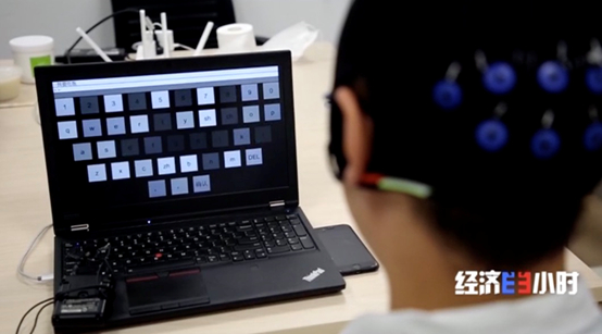 患者的视线看向电脑屏幕上的信息的时候,大脑会产生不同的脑电信号,信号采集设备从大脑皮层采集脑电信号经过放大、滤波等处理之后,可以转换为被计算机识别的信号。