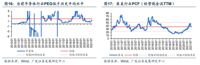 在新兴产业一级行业中,以PE(TTM)与PB(LF)的估值水平综合来看,目前处于较高历史估值水平的主要有CXO、光伏、半导体、医美和新能源汽车行业。如新能源汽车在2021年8月的PB(LF)为7.64X,较前一年同比增长75%,达到历史峰值。